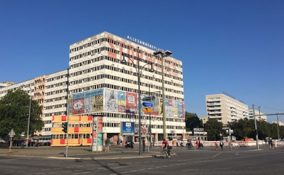in collaboration with steffen schuhmann (anschlage.de) // quote from announcement / statistia festival: “ever since the 1960s, walter womacka has marked alexanderplatz like no other artist. womacka authored the brunnen der völkerfreundschaft (“fountain of friendship”, 1970) and the copper relief mensch und raum (“man and space”, 1971), as well as unser leben (“our life”, 1964), a gigantic frieze marking the “house of teaching” facing the hds – still the largest artwork in europe. unser leben 2020, by sandy kaltenborn (image-shift.net) ; steffen schuhmann (anschlaege.de), is a reference to womacka’s gdr frieze: a vision of the future as monumental display. the new rendition is based, however, on a prolonged engagement with the wider hds network of neighbors, organizers, cultural workers. an attempt at a collective position on neighborhood developments such as the kollhoff plan for alexanderplatz, perhaps the most controversial example of city development in berlin. the plan is already being sporadically implemented. can a new city center realistically be based on the sheer logic of property development, urban competition and skyline aesthetics, without any thought for access, content, sustainability and the common good?”