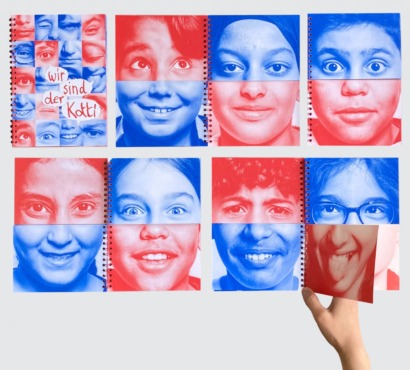 the project extended beyond the book itself with an accompanying public art exhibition. portraits of the children’s eyes were displayed prominently on the exterior walls of the subway station at kottbusser tor in berlin. this installation transformed an everyday urban space into a celebration of the students’ uniqueness and diversity, inviting passersby to reflect on the wonder of individual identity and connection (… one could say ;) ).