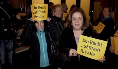 right to the city (henri lefebvre) is a slogan used by a coalition of tenants organizations who came together in late 2011. the members of the network represent a wide range of rent struggles in berlin – such as problems with social housing, luxury modernization, privatization of public city housing and so on. they understand their issues and problems with rising rent and gentrification as structural problems on the housing market in berlin. therefore they published a booklet (dossier) which helps politicians, the media and the wider public to have all urgent issues regarding gentrification in berlin bundled on the table. the slideshow shows impressions from some of their actions, such as protesting in the rotes rathaus (city hall) while the forming of the new city government, a discussion event in city parliament house and else. image-shift helped to produce all printed matter for this network.