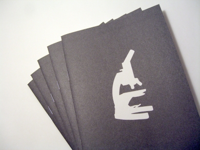 natascha sadr haghighian’s piece singing microscope was shown in the second half of a two-part exhibition at the MIT visual arts center in massachusetts. the exhibition explored the various ways that artists address the influence of technology on the senses. her installation featured an old microscope once used at mit. she replaced the eyepiece with a headphone speaker so at the point when the visitor expects to see something, he or she discovers a soundtrack. next to the microscope was a take-away brochure –which our studio designed together with the artist– of a conversation with the mit professor evelyn fox-keller. fox-keller’s work in the area of gender and science was the inspiration for haghighian’s piece. the installation is a reflexion around the « dead metaphor » (a metaphor which has lost the original imagery of its meaning owing to extensive, repetitive popular usage) in science and by extension in art and daily life.