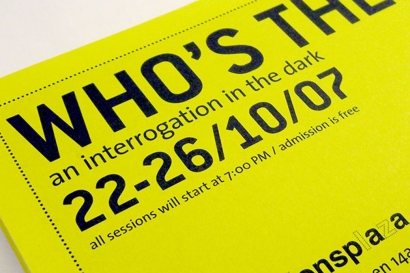 unitednationsplaza was a project curated by several artists. for one year the project was stationed in berlin and functioned in part as a school. the artists natascha sadr haghighian, ines schaber and the critic and curator anselm franke organised in this context, a weeklong seminar titled, who’s there? — an interrogation in the dark in october 2007. their seminar attempted to negotiate the possibilities of the political and the artistic in a state of a general mental and social blackout. the seminar involved guest presenters from different cultural fields.